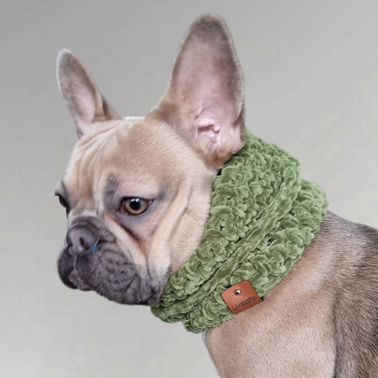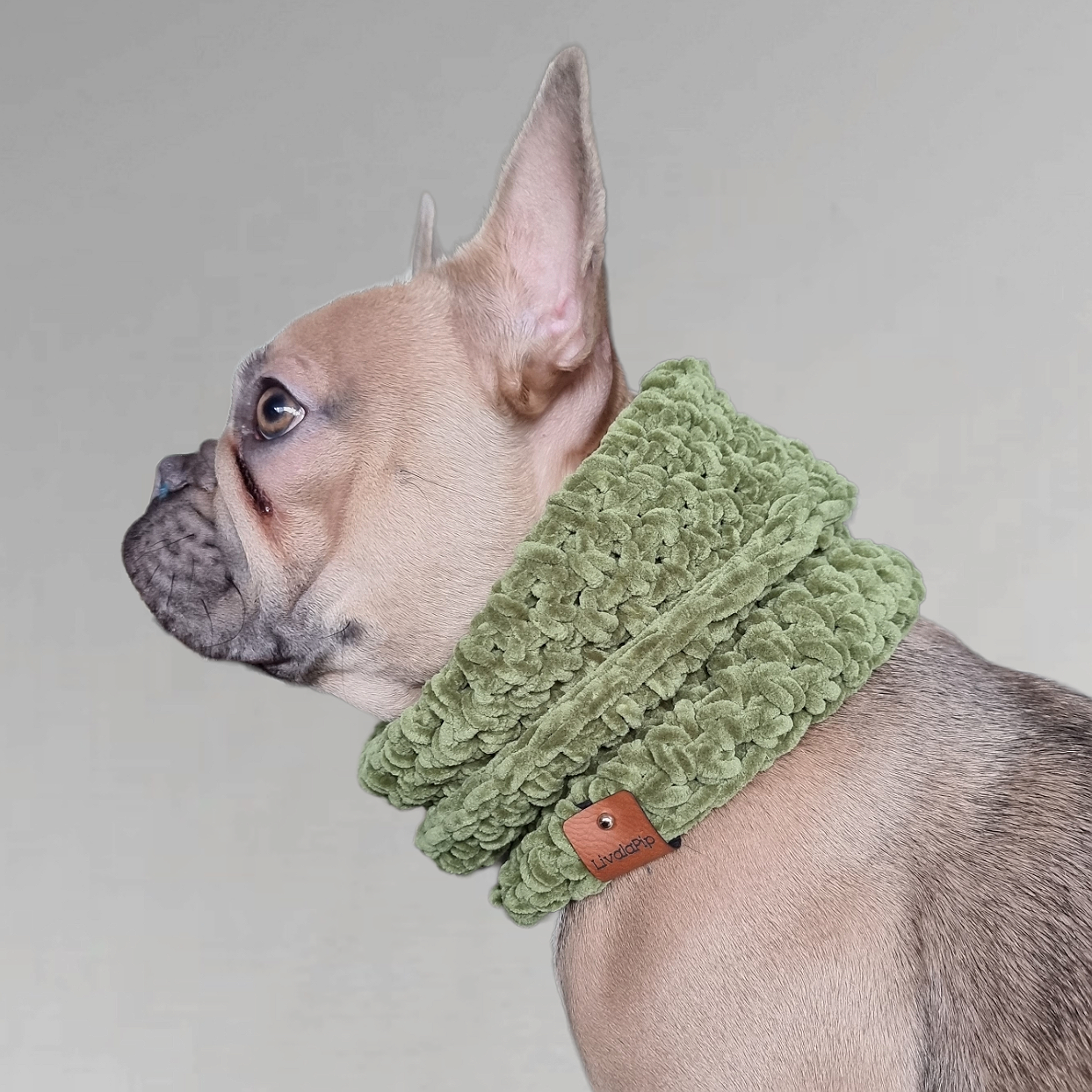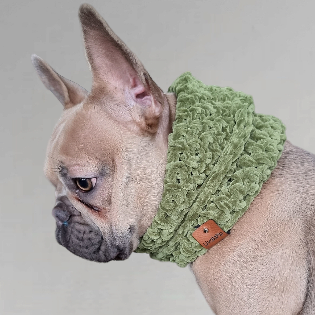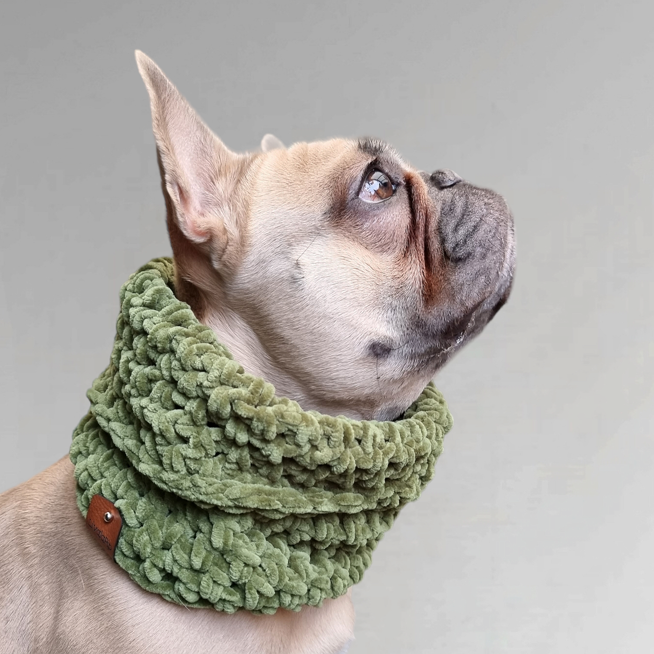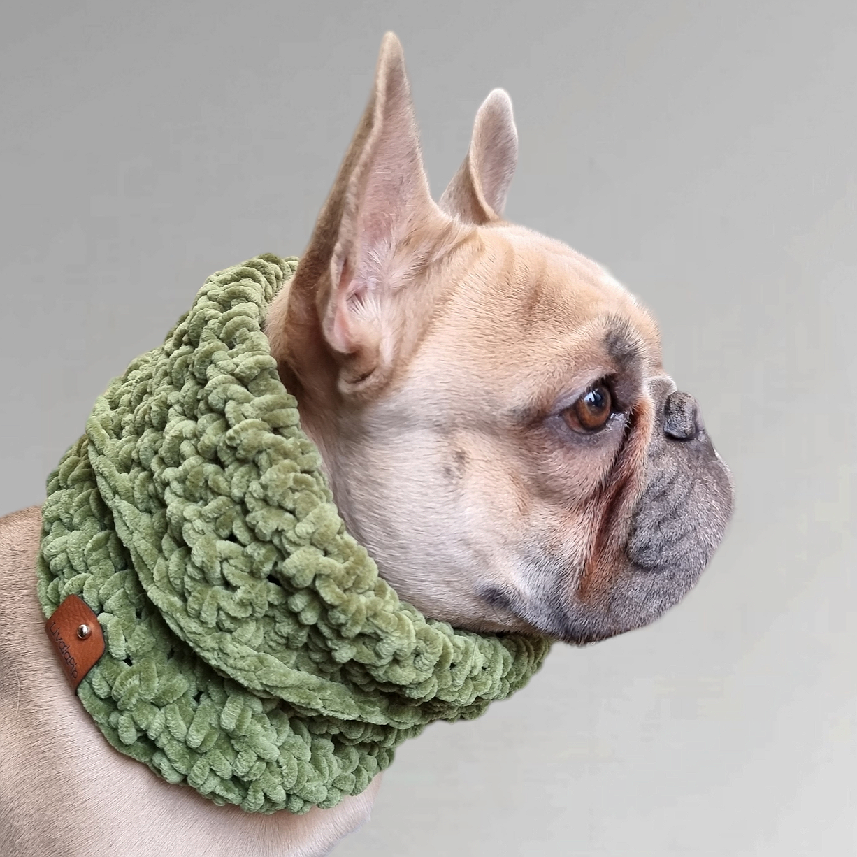 The handmade turtleneck scarf for your sweet four-legged friend is a pleasant accessory to provide protection and comfort during the cold days.