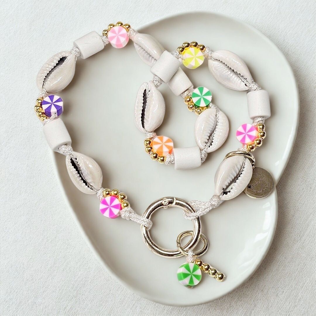 De anti-tekenketting Shell Festival is met de hand geknoopt in vrolijke kleuren en zomerse details. De combinatie van platte kralen, echte schelpen en zonnige tinten zorgt voor een speelse en opvallende look. Deze ketting is niet alleen leuk om te zien – hij draagt ook bij aan het natuurlijk minder aantrekkelijk maken van je hond voor teken.