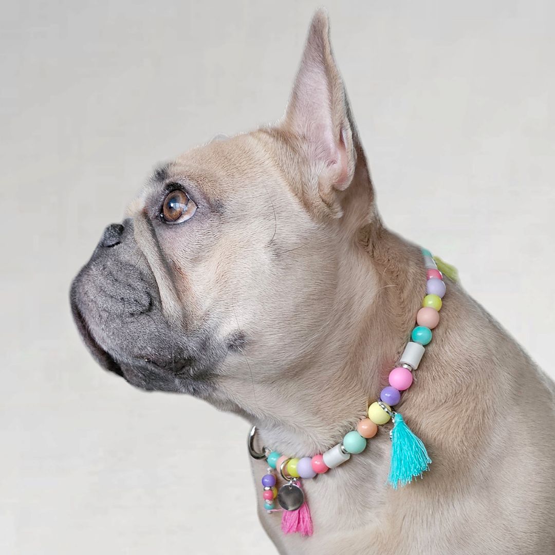 Met zijn opvallende kleuren en speelse details brengt de "Summer Sorbet" ketting een vleugje Ibiza-stijl naar de look van jouw hond.