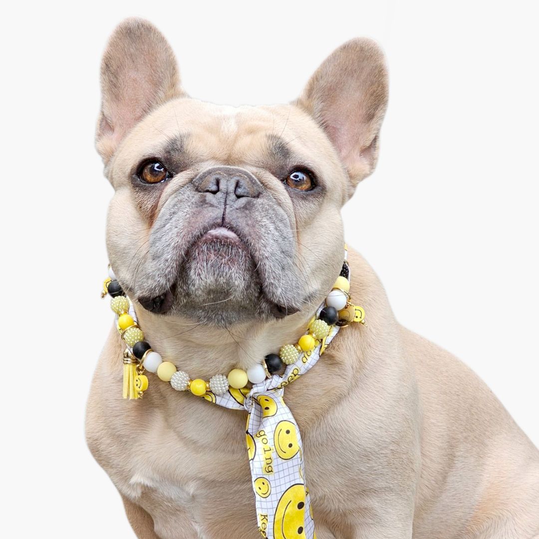 Laat je hond stralen van geluk met de LivalaPip Original© Smiley Hondenketting! Dit unieke, handgemaakte hondenaccessoire combineert een vrolijke sjaal en een speelse hondenketting in één. Het is een waar feestje om te zien en de ultieme blikvanger voor je viervoeter.