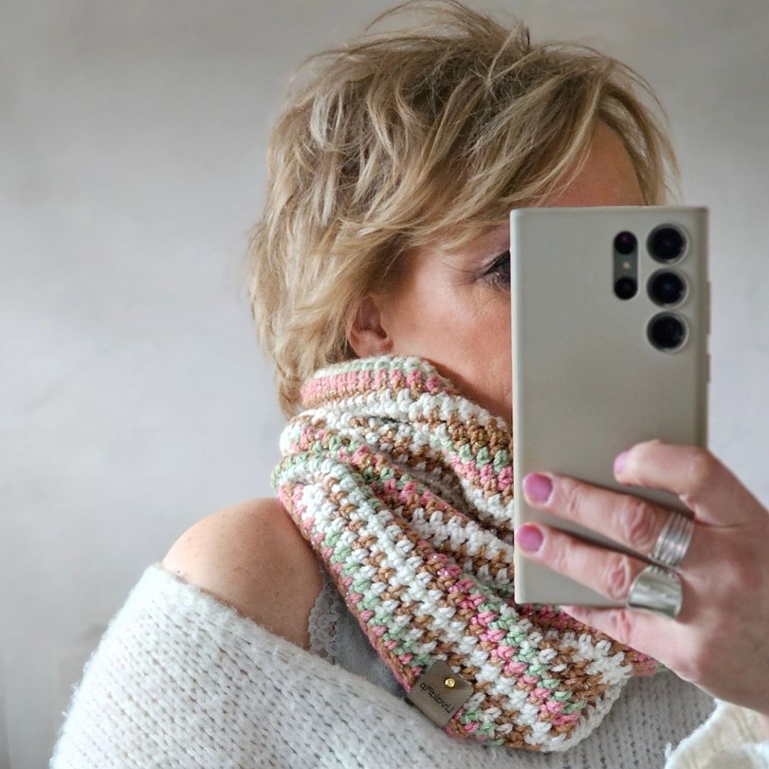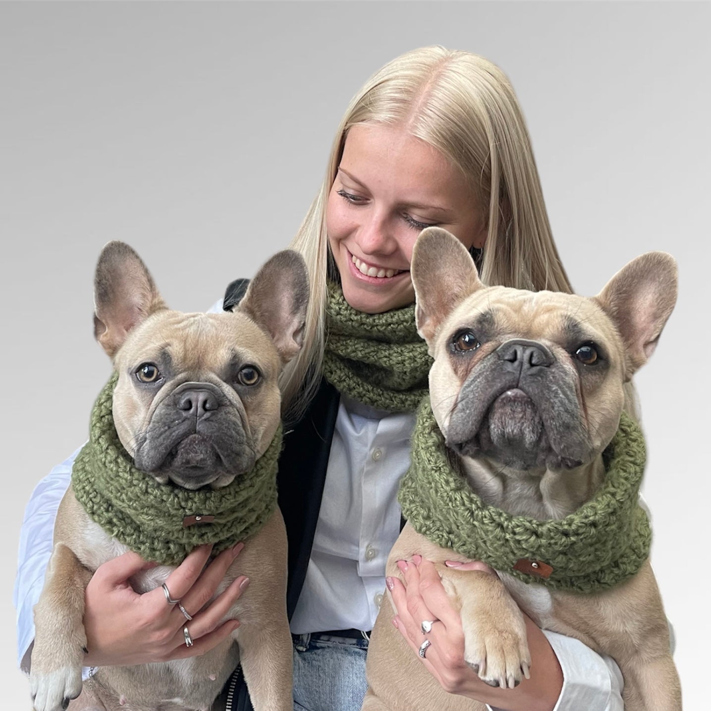 The handmade turtleneck scarf for the ideal dog mom is a pleasant accessory to provide protection and comfort during the cold days.