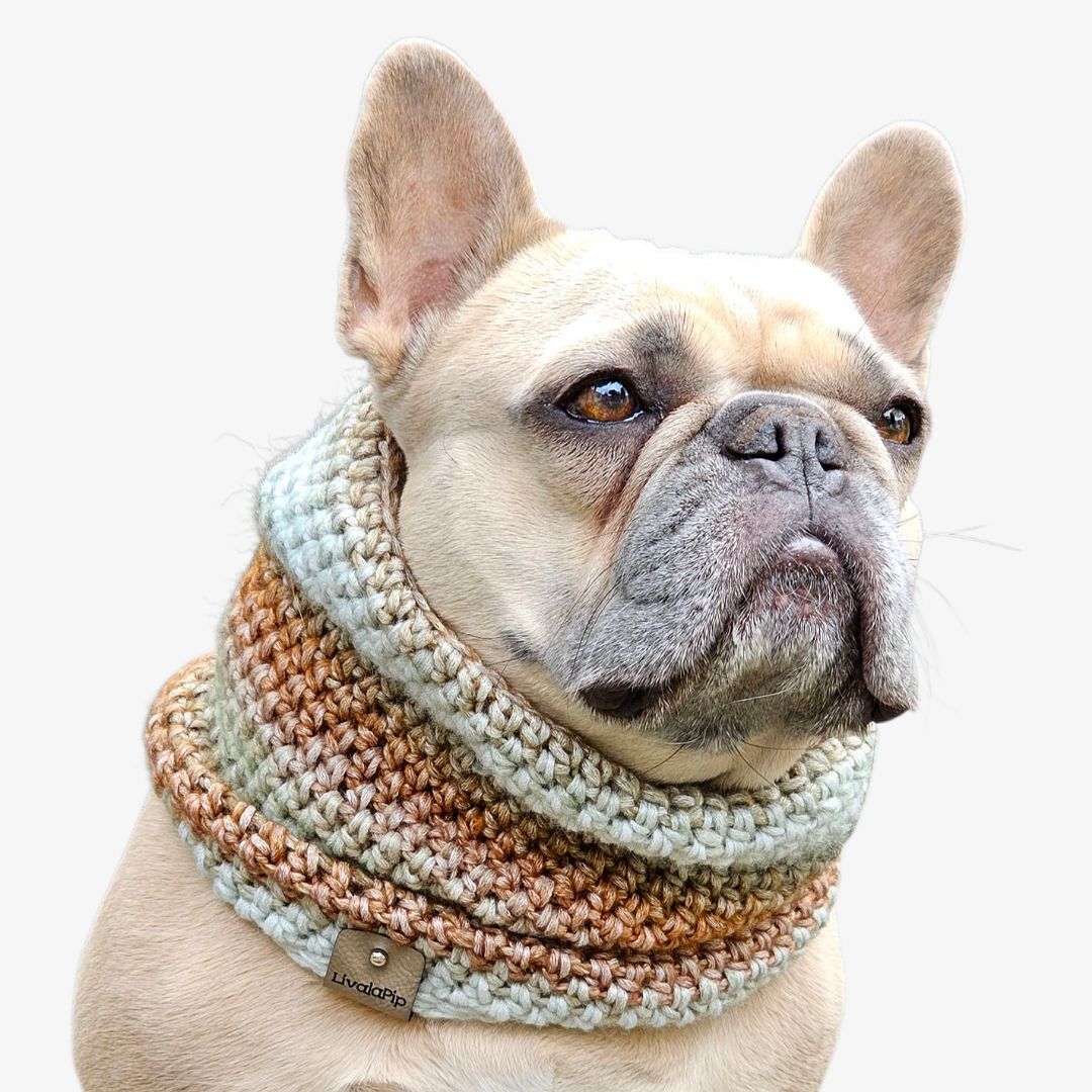 Laat je hond stralen met de verfijnde, luxe uitstraling van onze Dubai Col sjaal. Geïnspireerd op de subtiele, rijke kleuren van de beroemde chocoladerepen met pistachevulling, combineert deze prachtige, handgemaakte sjaal de zachte tinten van room, zand en een vleugje lichtgroen. Gemaakt van zachte, hoogwaardige wol, is dit het perfecte hondenaccessoire voor de koudere maanden.