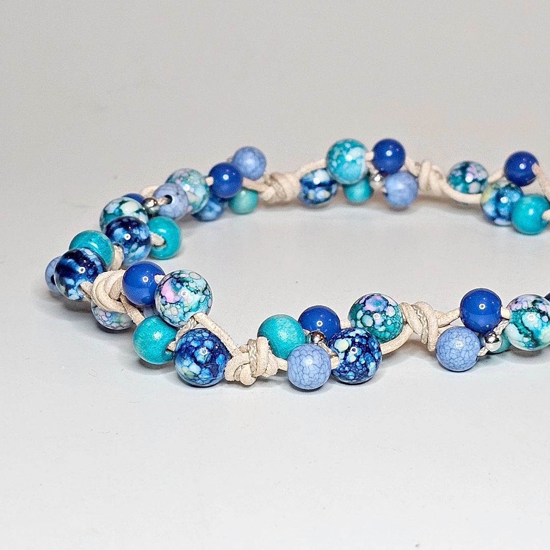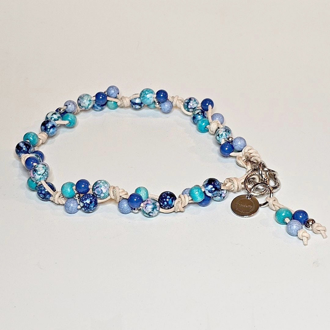 Laat jouw hond stralen met de unieke Blue Lagoon hondenketting, een stijlvol accessoire dat geïnspireerd is op de prachtige kleuren van de zee. Deze handgemaakte ketting is een echte eyecatcher dankzij de zorgvuldig geselecteerde, verschillende tinten blauwe kralen die met de hand op hoogwaardig leer zijn geknoopt. Voor extra stevigheid is er gebruik gemaakt van microcord.