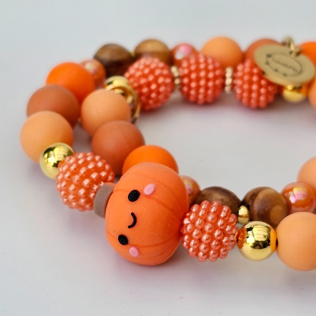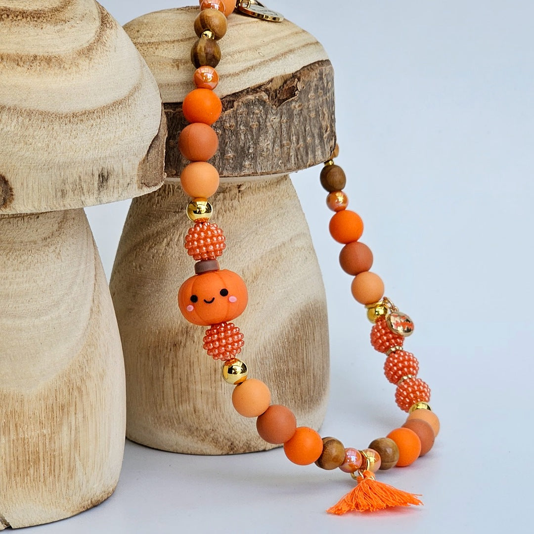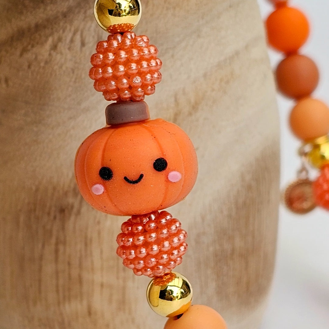 - De Glimlach van een Pompoen: De lachende, oranje pompoen-kraal voegt een vrolijk en speels element toe. Wie weet, is hij wel betoverd met een vriendelijke geest.