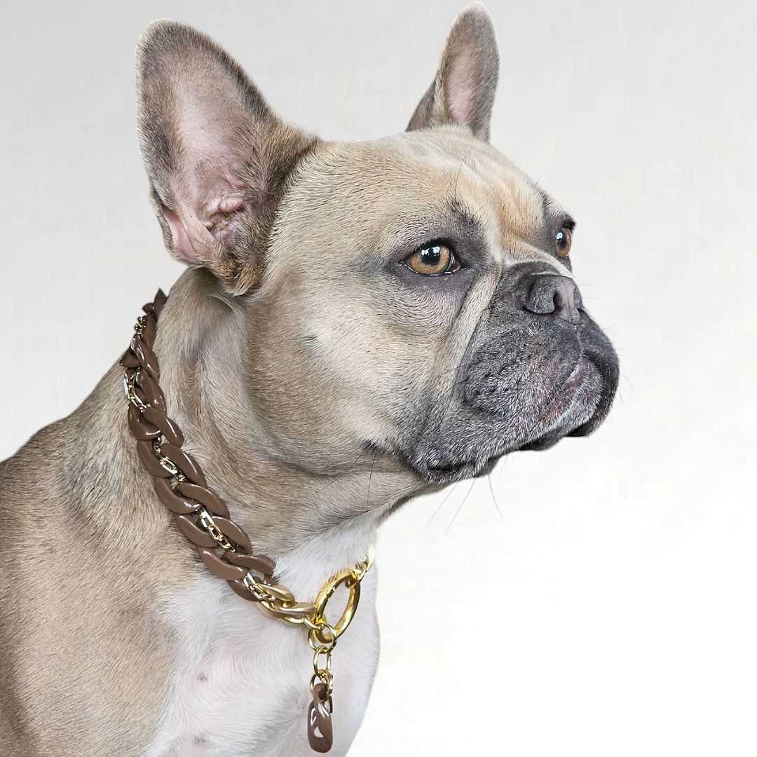 Ontdek onze elegante "Choco luxe" acryl schakelketting, speciaal ontworpen voor honden met een flair voor stijl. Deze ketting, uitgevoerd in een rijke, diepe donkerbruine kleur, combineert moeiteloos comfort met mode. Met een breedte van 2,5 cm en een afwerking in zilver- of goudkleur is deze ketting de perfecte keuze voor eigenaren die hun viervoeter een verfijnde look willen geven.