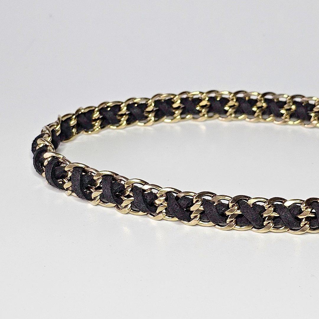 Onze Steel Gold Black RVS Collar is een prachtige toevoeging aan de garderobe van jouw hond. Deze halsband is vervaardigd van hoogwaardig roestvrijstaal met een elegante gouden afwerking, wat niet alleen duurzaamheid garandeert maar ook stijl uitstraalt. De ketting is verrijkt met zwart suède voor een luxe uitstraling, perfect voor dagelijkse avonturen en speciale gelegenheden.
