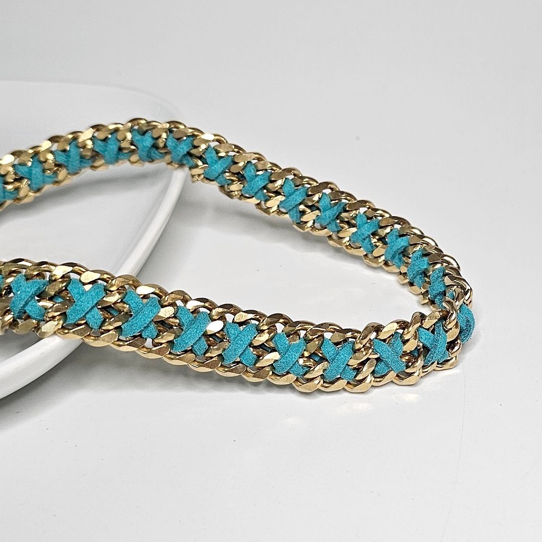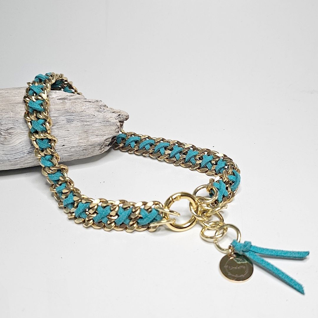 De Gold Petrol RVS collar is een elegante toevoeging aan de garderobe van jouw geliefde viervoeter. Deze unieke collar combineert hoogwaardig roestvrijstaal met een prachtige petrolkleurige afwerking, wat niet alleen duurzaamheid garandeert maar ook een luxe uitstraling biedt.Verfraaid met zacht suède in petroltinten, is deze halsband perfect voor dagelijkse avonturen en speciale gelegenheden. Het ontwerp zorgt voor eenvoudig openen en sluiten, in diverse maten beschikbaar om aan te sluiten bij verschillende hondenrassen.