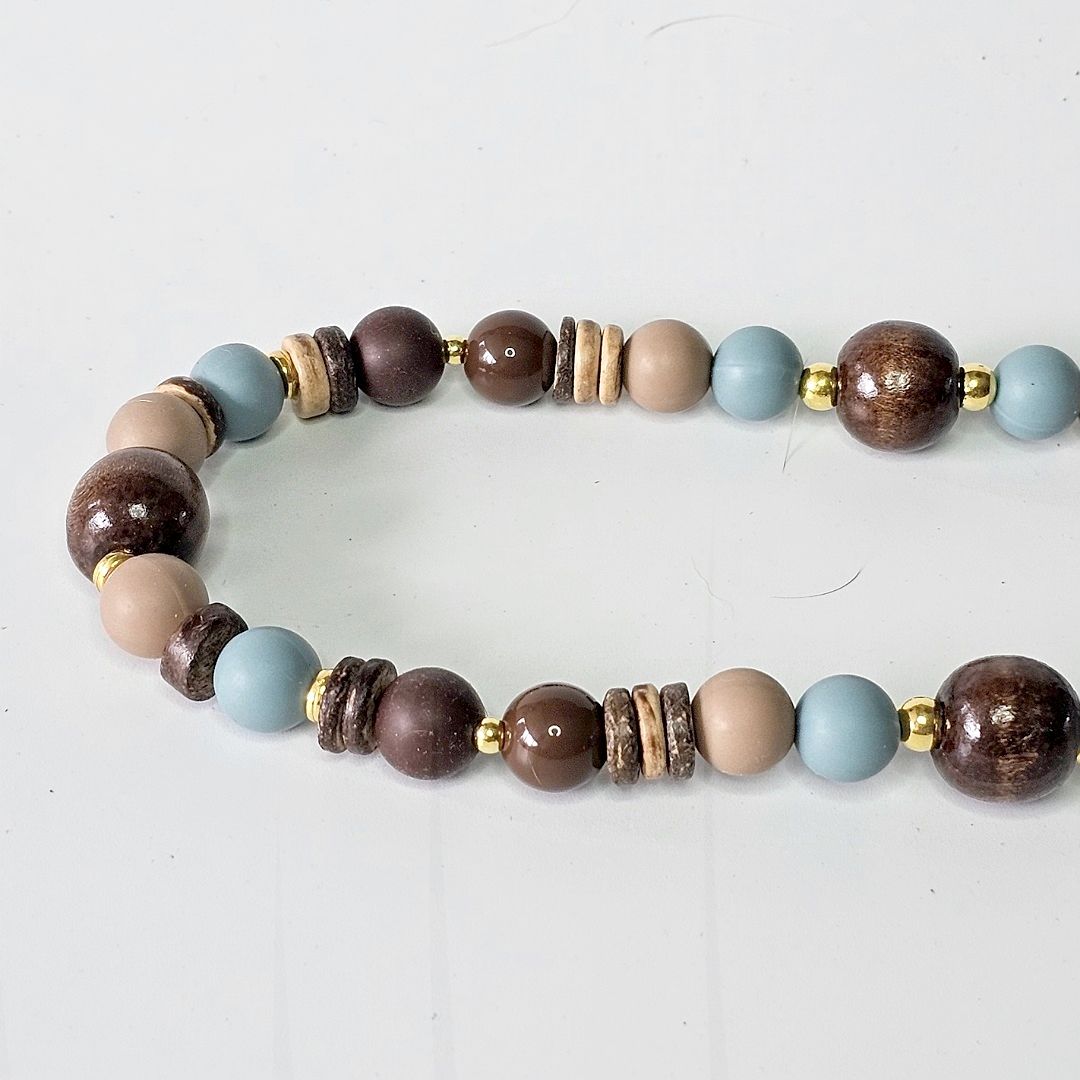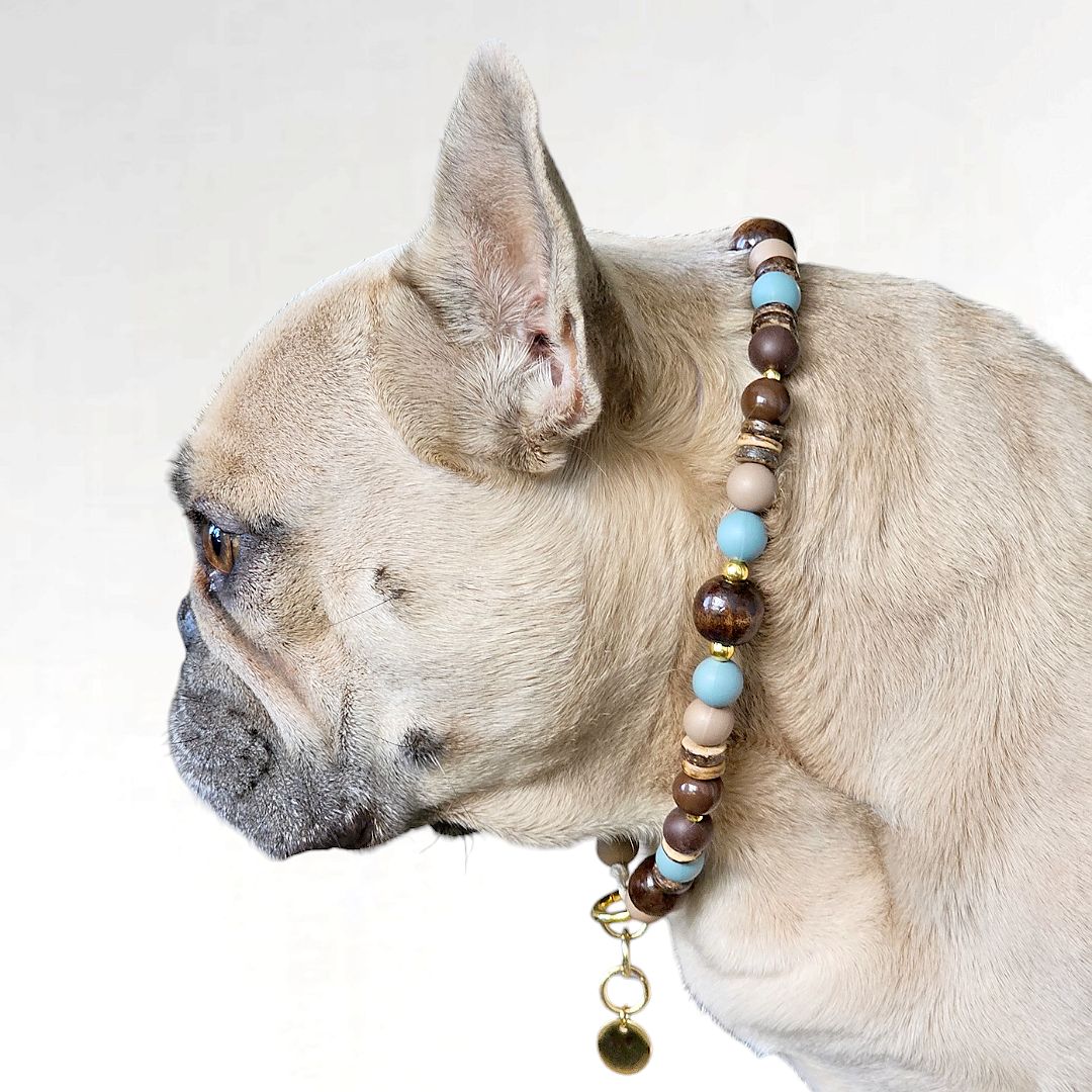 De kleuren—hout, donkerbruin en caramel bruin—geven de ketting een natuurlijke uitstraling die bij elke hondenlook past, of je nu voor casual of chic gaat. De sluiting is eenvoudig te openen en sluiten, zodat je de ketting gemakkelijk om doet en weer afneemt.