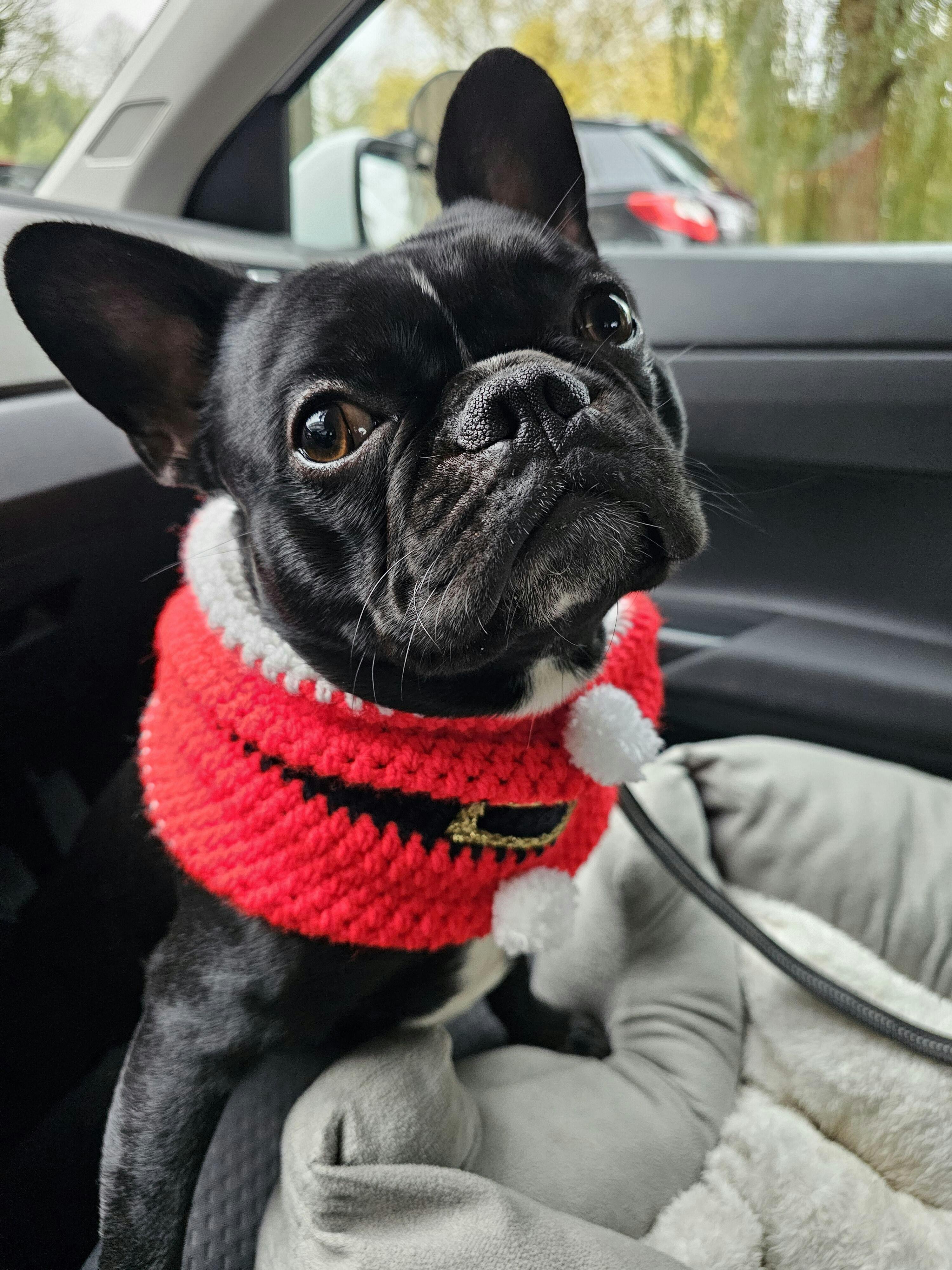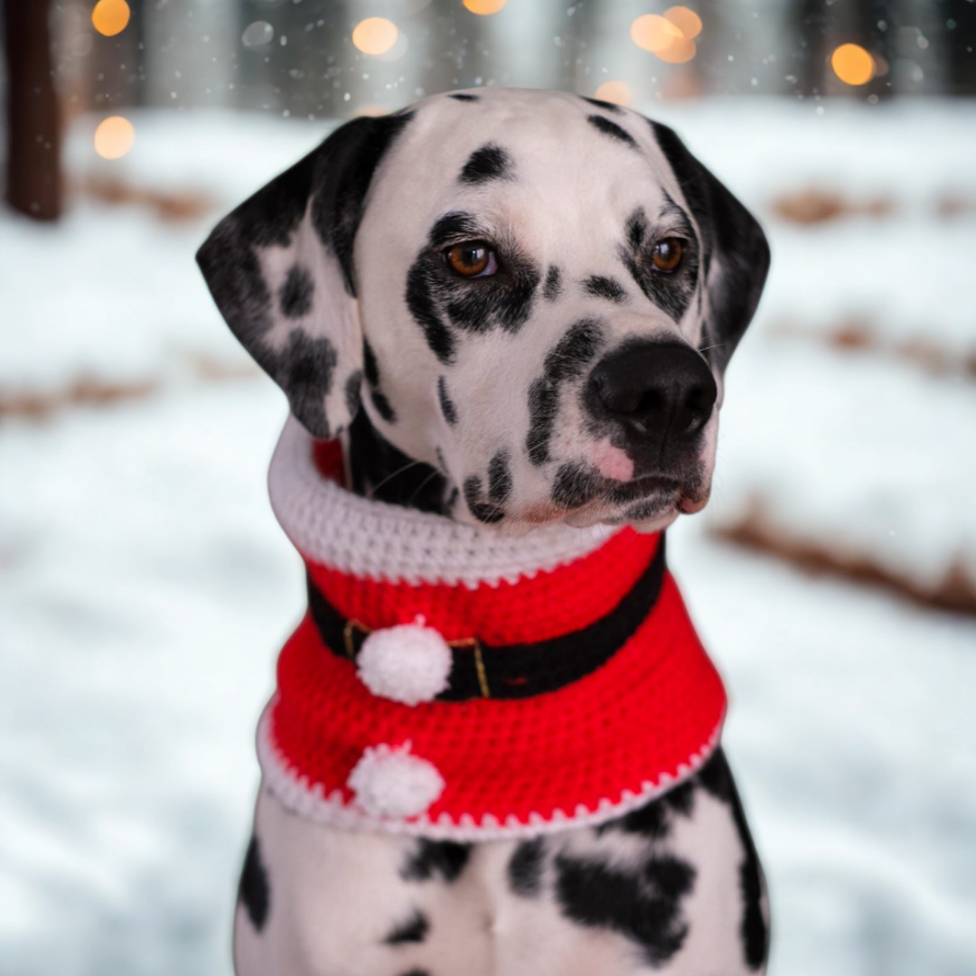 Perfect voor kerstfoto’s, winterse wandelingen of als vrolijk detail tijdens de feestdagen. Met de colsjaal Santa is elke hond klaar om de kerstman persoonlijk te begroeten – warm, stijlvol en onweerstaanbaar schattig.