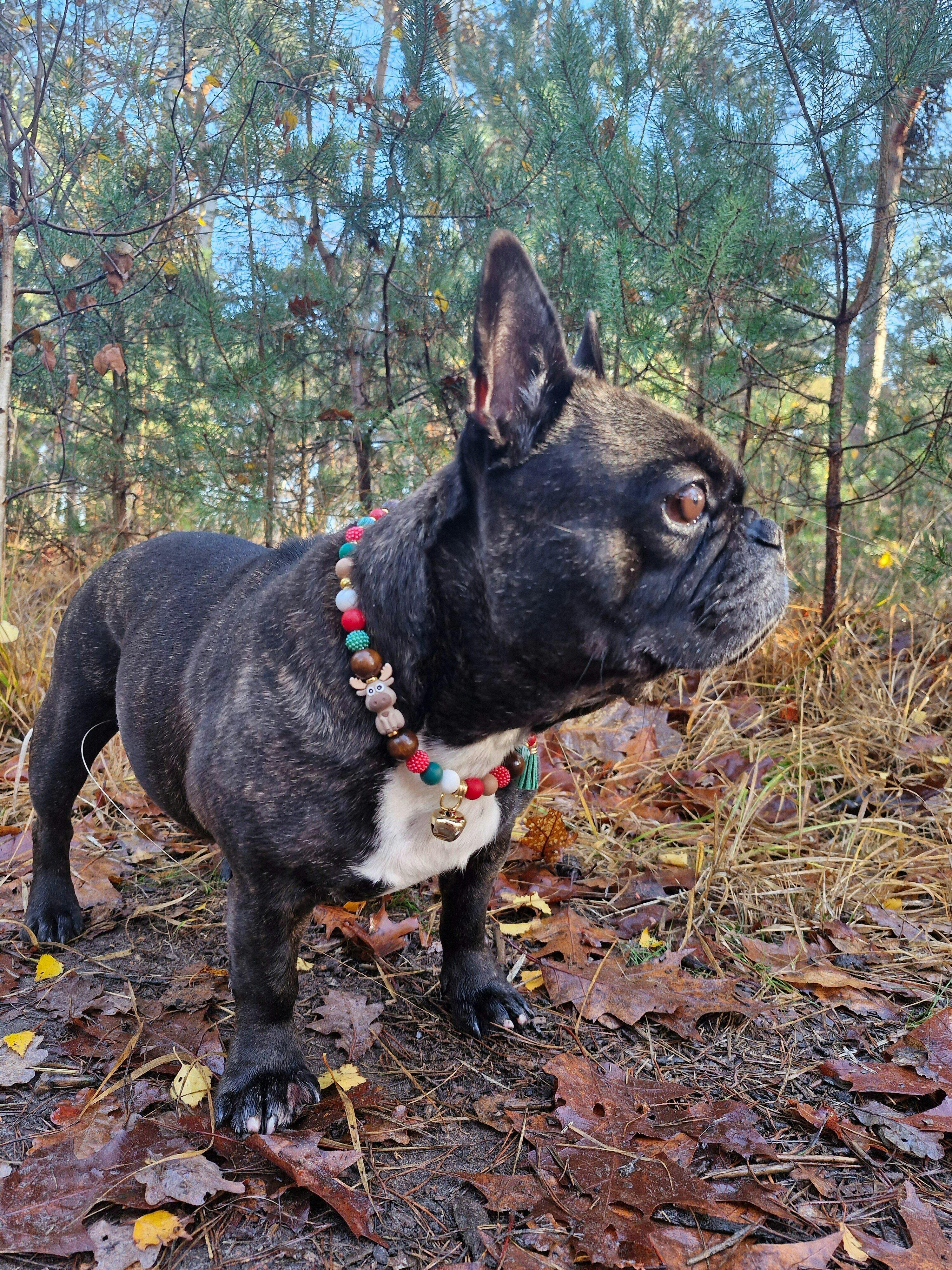 Ontmoet Rudy the Reindeer — de feestelijke kerstketting die elke hond laat stralen! Deze handgemaakte ketting barst van de kerstmagie, met warme houttinten, glanzende kralen in rood, groen, wit en karamel, en natuurlijk een schattige rendierbedel die voor een speelse twist zorgt.