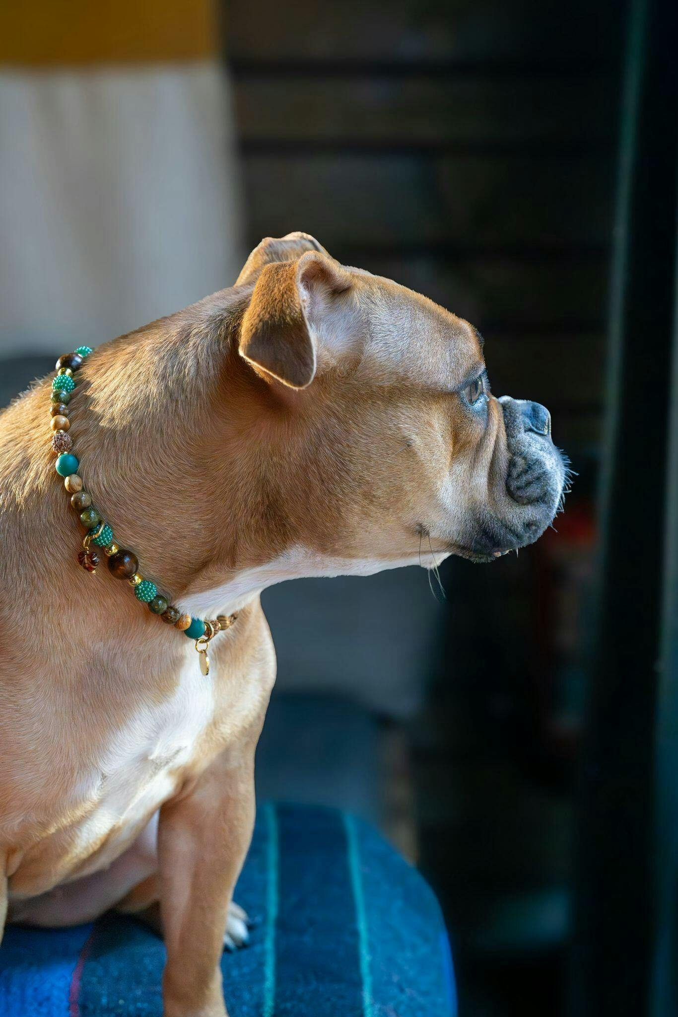 Combineer de Smaragd hondenketting met de bijpassende colsjaal voor honden voor een warme, natuurlijke look die doet denken aan een wandeling door het bos.